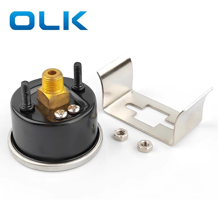 Il misuratore di pressione GU di tipo Airtac è dotato di una connessione filettata in ottone, lunetta in acciaio inossidabile, custodia nera, staffa corrispondente e due dadi.