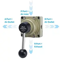 Le valvole manuali a due vie a quattro vie Ouleikai (OLK) HV200A/B sono azionate manualmente, con la commutazione del percorso dell'aria ottenuta ruotando la maniglia della valvola. Sono facili da usare e intuitivi e non richiedono alimentazione aggiuntiva di energia. La valvola HV200B a 2/4 porte è dotata di un silenziatore incorporato nella porta di scarico inferiore.