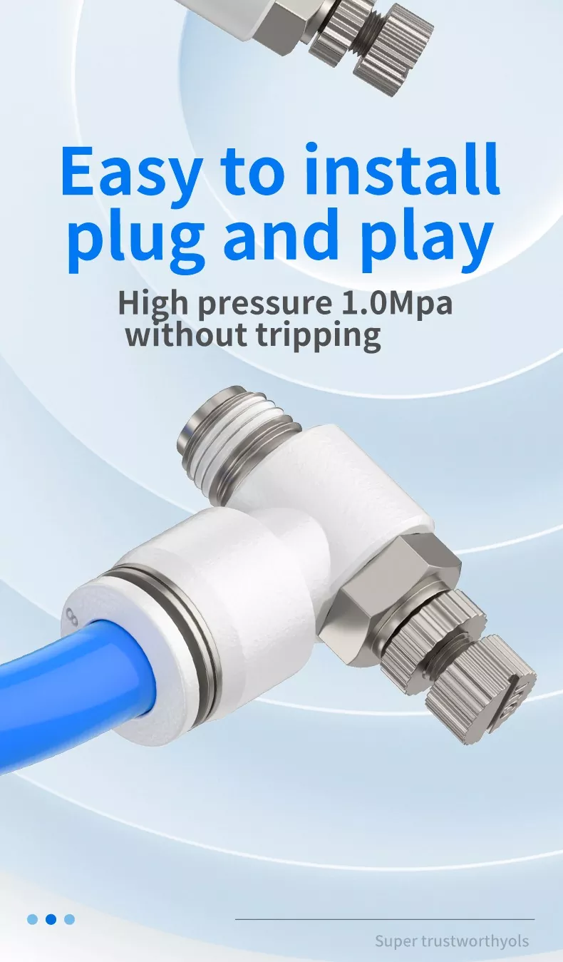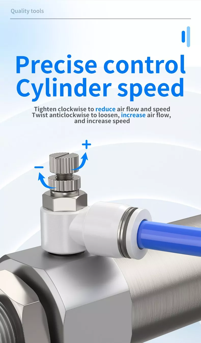 I regolatori di velocità sono componenti pneumatici comuni utilizzati per regolare la velocità di estensione e retrazione degli attuatori. Le valvole a farfalla sono essenzialmente componenti di regolazione del flusso che controllano la velocità del cilindro, ma le loro posizioni di installazione, le direzioni di strozzamento e il design del corpo differiscono. In base al metodo di controllo, possono essere suddivisi in tipo con limitazione dello scarico e tipo con limitazione dell'ingresso.