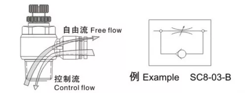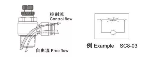 Una valvola di controllo del flusso unidirezionale è una valvola di controllo del flusso composta da una valvola di ritegno e una valvola a farfalla in parallelo. È comunemente usato per controllare la velocità di un cilindro ed è anche noto come regolatore di velocità.