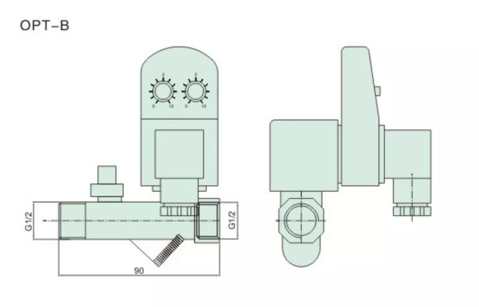 Lo scarico automatico con timer elettronico OLK OPT-B supporta sia il controllo elettrico che lo spegnimento manuale come doppia protezione; sul corpo della valvola è riservato un interruttore di arresto manuale esterno per impedire il flusso in caso di interruzione di corrente. L'ingresso è situato sul lato opposto alla batteria, la porta centrale senza filettatura è l'uscita di scarico e la porta finale è l'uscita.