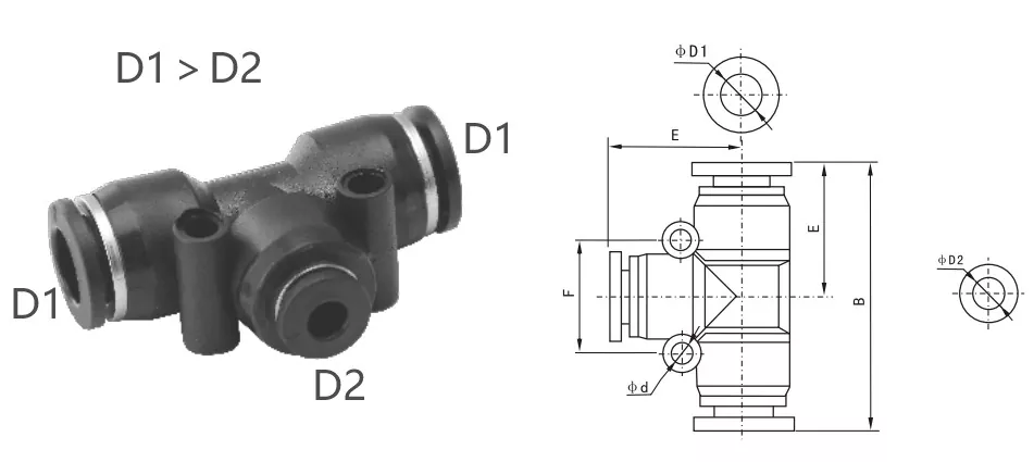 La serie PEG è un raccordo a tee sindacale, con D1 più grande di D2, progettato per collegare tubi principali e di ramo di diversi diametri. Il raccordo sindacale per il riduttore del riduttore viene fornito con un piccolo foro di montaggio per l'installazione facile e sicura su apparecchiature o pannelli, risparmiando spazio di installazione.