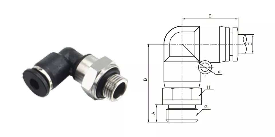 La spinta del gomito maschio PL-G nel raccordo del tubo è un connettore del gomito a 90 gradi e un filo G ideale per l'uso in spazi confinati o in cui è richiesto il reindirizzamento del tubo. Affressato con anelli di tenuta per prevenire la perdita di aria o fluido.