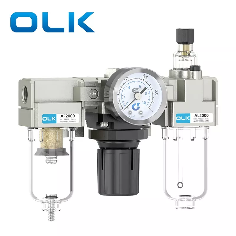 L'unità FRL (filtro-regolatore-lubrificatore) AC tipo SMC è un componente pneumatico fondamentale che integra la filtrazione della fonte d'aria, la riduzione e regolazione della pressione e il trattamento di lubrificazione. Fornisce aria compressa pulita, stabile e lubrificata per i sistemi pneumatici, prolungando così la durata dei componenti pneumatici e migliorando la stabilità del sistema. L'unità FRL della serie AC OLK funge da "guardiano" essenziale dei moderni sistemi pneumatici.